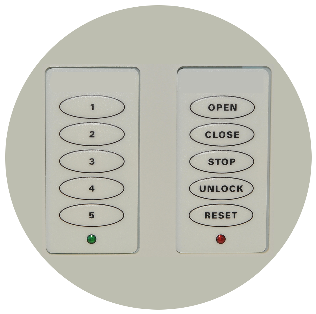A security wall switch is used outside a home to allow secure access to the door functions. The security wall switch requires a 4 digit pin number to be entered before enabling the door functions Open, Close, Stop or Reset. Care must be taken when changing the wall switch pin number as once it is set it cannot be reset without knowing the original pin number.